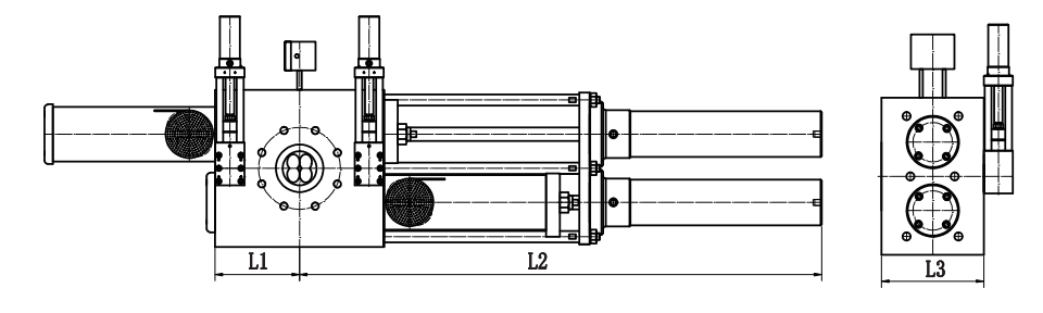 2、設(shè)計(jì)有排氣系統(tǒng),可充分排除物料中和待換多孔板中夾雜的氣體,防止換網(wǎng)過(guò)程氣體形成于產(chǎn)品中,提高制品的質(zhì)量。